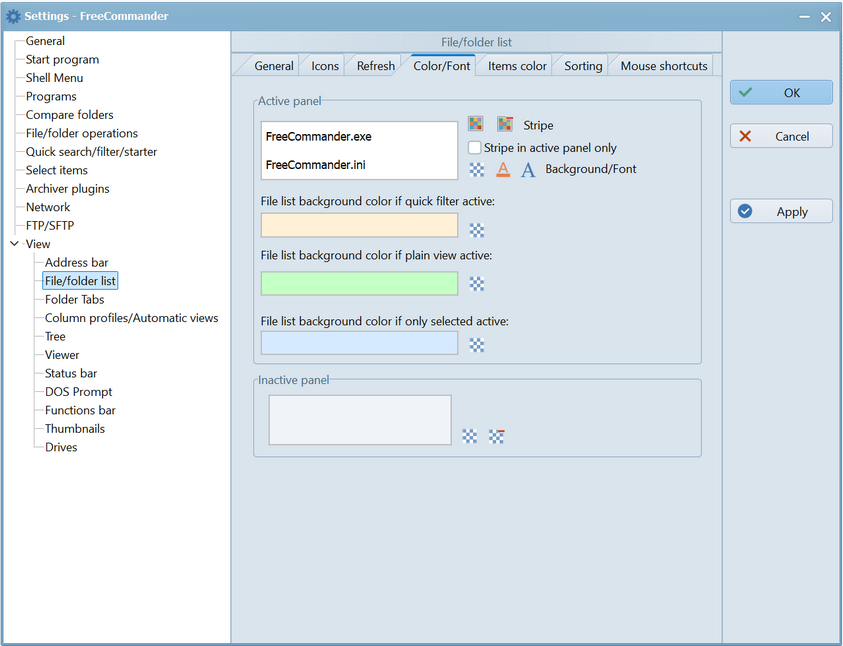 In addition, the background color of the file/folder list can be defined separately for the following cases: