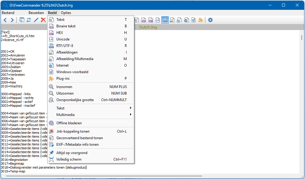 De weergave van het bestand hangt af van het bestand en de volgende instellingen in FreeCommander: