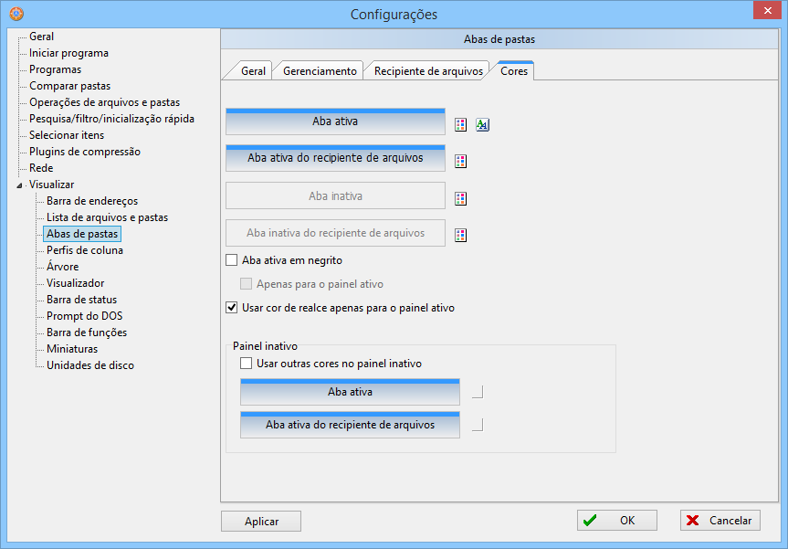 as seguintes cores podem ser definidas para a aba ativa de recipiente de arquivos no painel inativo:
