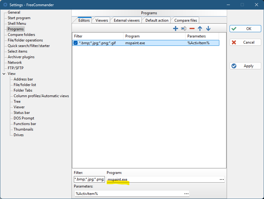 - Topic: How do I setup up FC to use mspaint.exe as an editor?