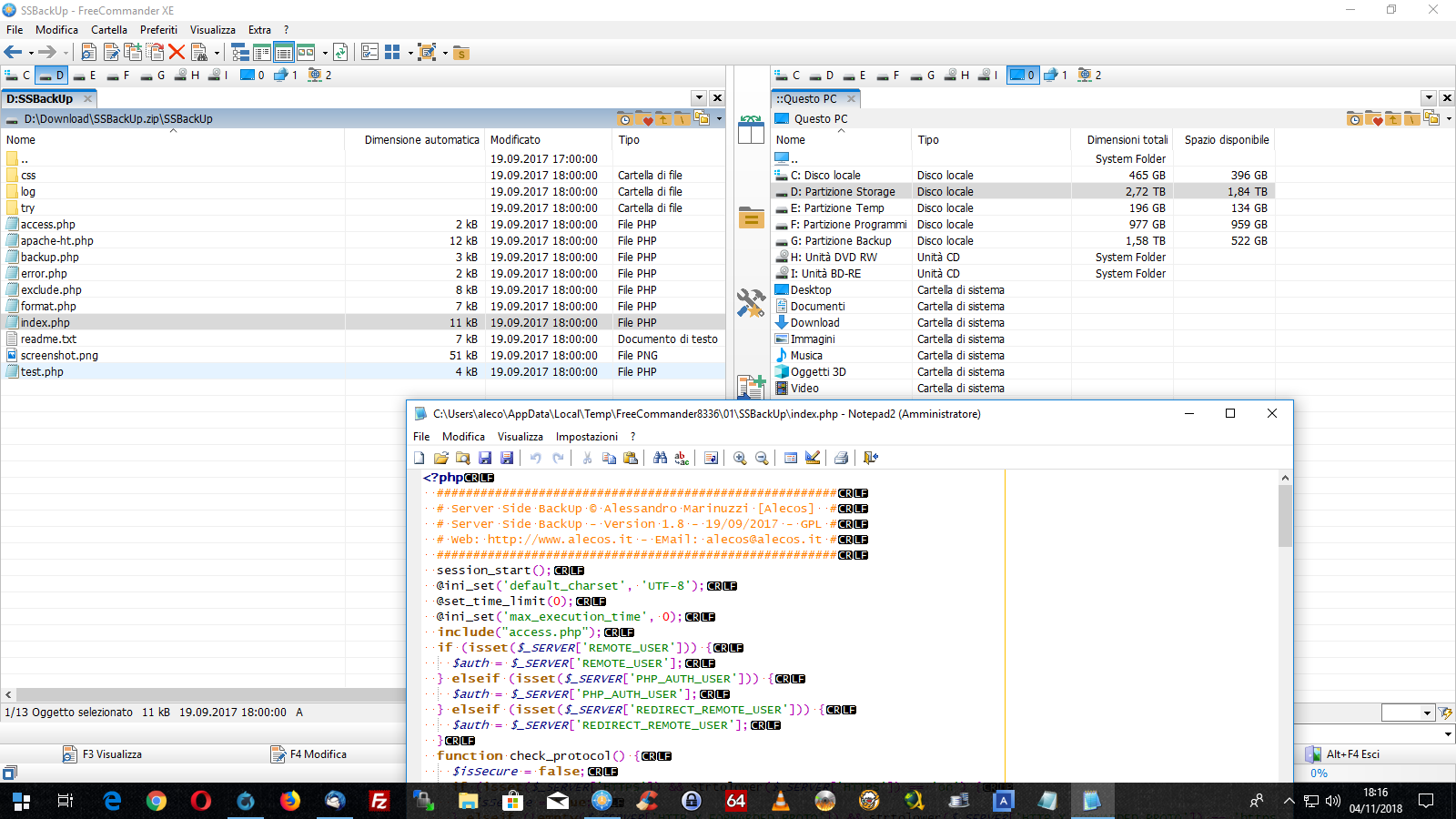 - open the file index.php per double click - editor notepad2 will be opened