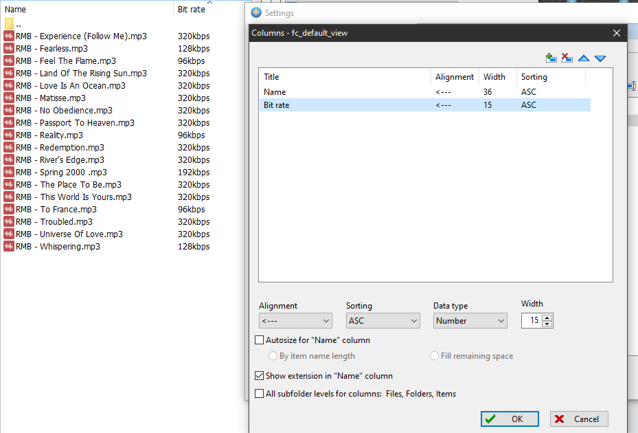 - in details view add just 2 columns, Name and Bit rate