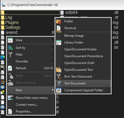 in the "Right-Click-Mouse > New" submenu.