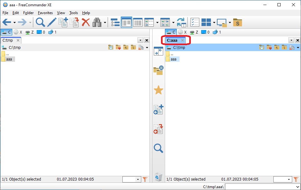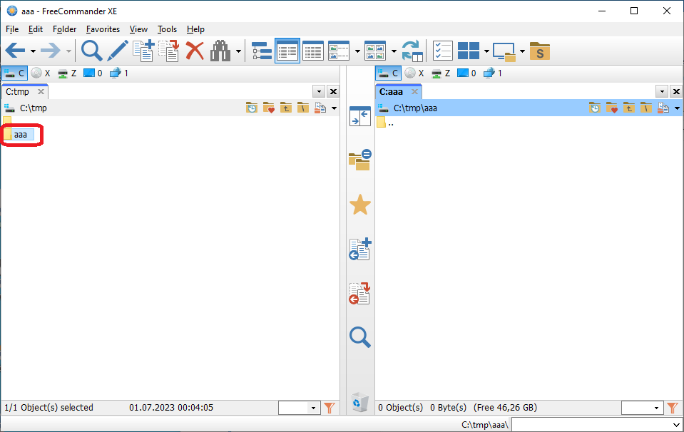 7. Open the folder "C:\tmp\aaa" in the right pane.