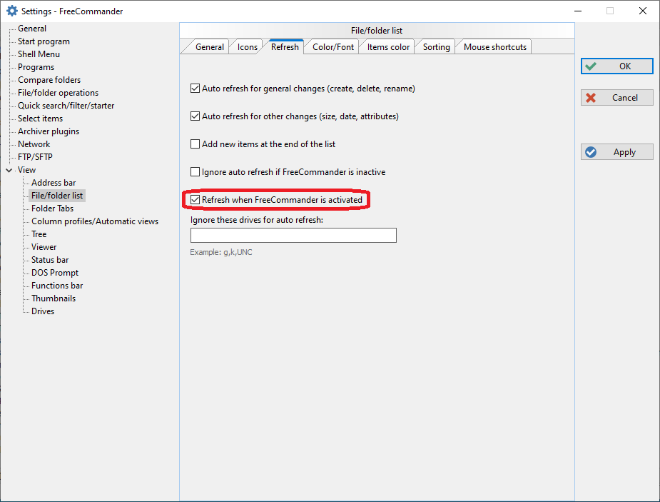 4. Check "Refresh when FreeCommander is activated".