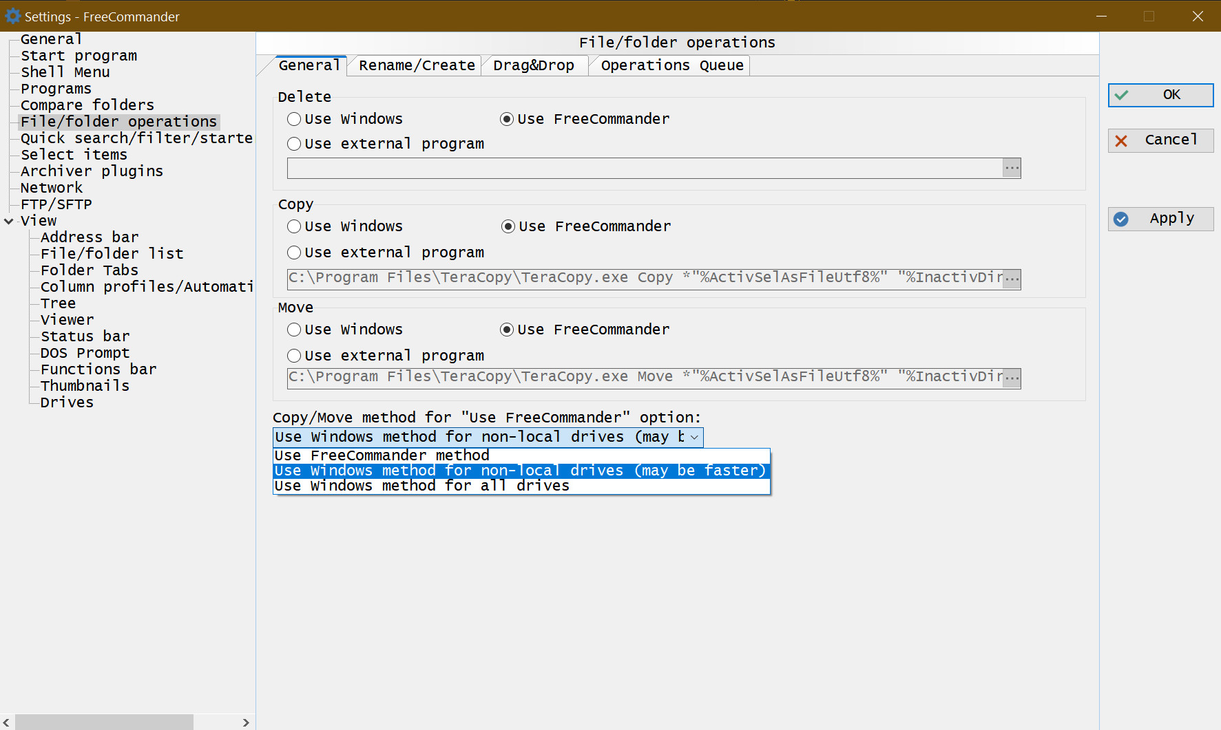 I did not saw and still do not see the supposed "Use recycle bin when overwriting"Karol wrote: 16.12.2023, 21:27You need to set copy operation to "Use FreeCommander" under Settings-File/folder operations.- Implemented: New option "Use recycle bin when overwriting" in the FreeCommander copy dialog (Settings tab)