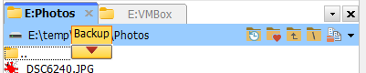 Wenn die Option "Laufwerks-Schaltfläche in Adresszeile anzeigen" im Menüpunkt "Extras → Einstellungen → Anzeige → Laufwerke" angehakt ist, wird am linken Rand der Adresszeile eine Schaltfläche für das Laufwerk angezeigt, dessen Ordner gerade aktiv ist.