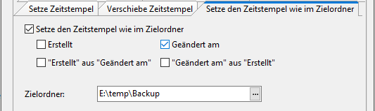 Wenn diese Option angehakt ist, sind die Optionen "Verschiebe Zeitstempel" und "Setze den Zeitstempel wie im Zielordner" nicht aktiv.