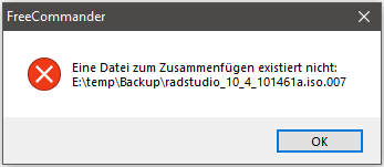 Wenn eine Teildatei nicht im Pfad der aufgerufenen ".split"- oder ".0001"-Datei steht erscheint eine Meldung.