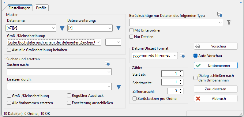 Datei - Mehrfaches Umbenennen - Tab Einstellung |