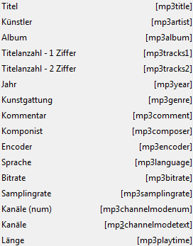 Auch die Platzhalter für Infoangaben, MP3 und EXIF können durch die Angabe von Anzahlzeichen erweitert werden. Beispiel: [exif_camera6] - wird durch die ersten 6 Zeichen des Kameranamens ersetzt.