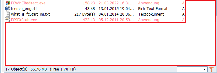 Im Datenbereich werden die Ordner und Dateien des übergeordneten Ordners gelistet. - Auswahl aufheben