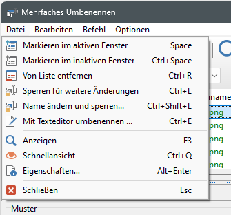 Nach Aktivieren dieses Menüpunktes wird das Fenster " Mehrfaches Umbenennen" ohne weitere Aktion geschlossen.