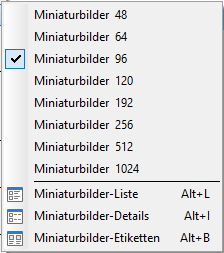 Ein Untermenüpunkt je Größe der Miniaturbilder