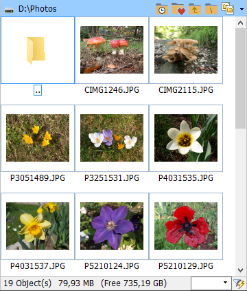 Nach Aktivierung des Menüpunktes "Miniaturbilder" oder der Tastenkombination "Strg+I" werden mit der Ansichtsart "Miniaturbilder" die Elemente im aktiven Dateifenster als kleine Bilder dargestellt: