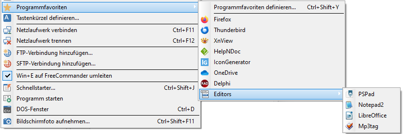 Unter "Extras → Programmfavoriten" können Werkzeugleisten mit Programm- und Ordnerfavoriten definiert und aufgerufen werden.