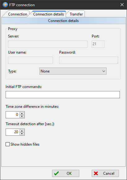 FTP connection properties - tab Connection details |
