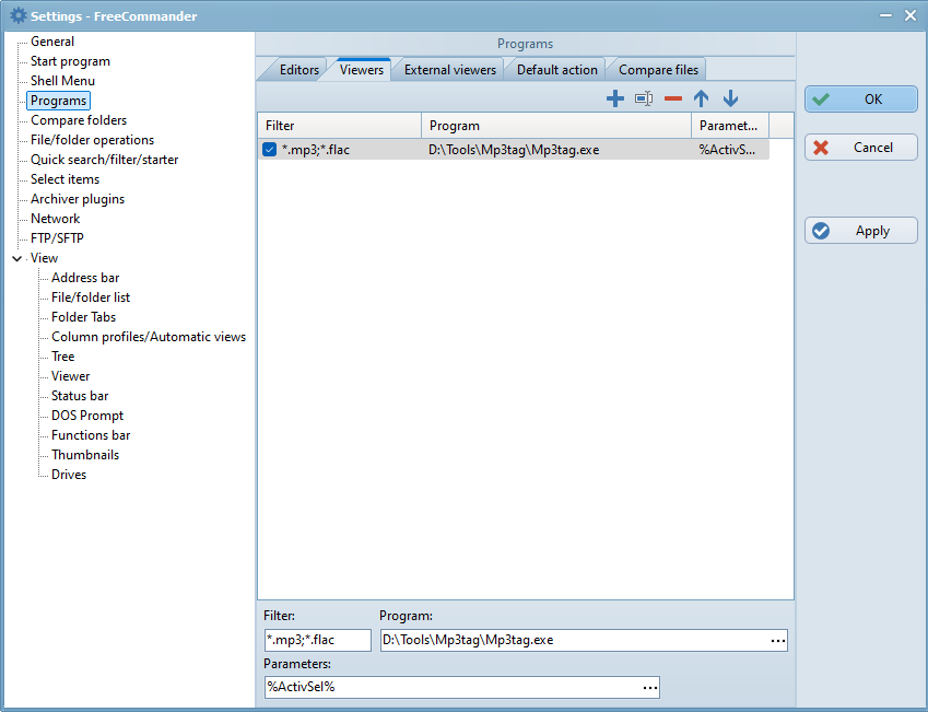 In the above example, the viewer "Mp3tag.exe" is assigned to files with the extensions "mp3" and "flac".