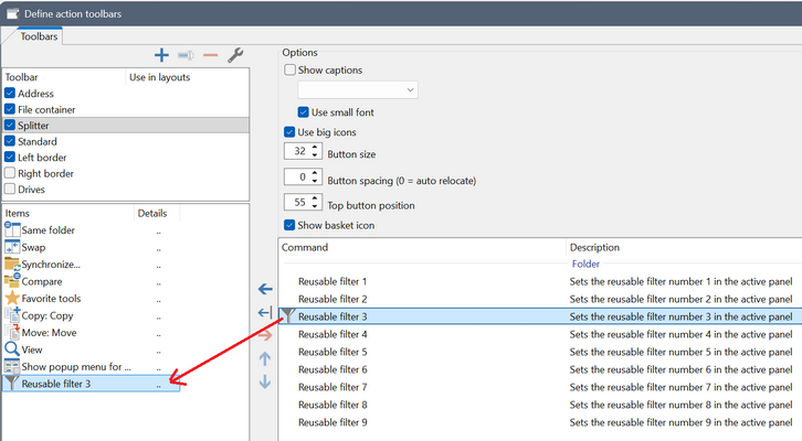 2. Add reusable filter 3 to the e.g. splitter toolbar